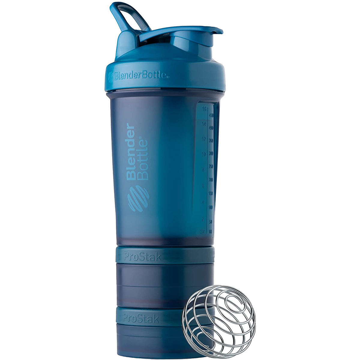 • Includes 22 oz capacity (measurement markings to 16 oz) BlenderBottle, 150 cc jar, 100 cc jar, pill organizer and patented BlenderBall wire whisk