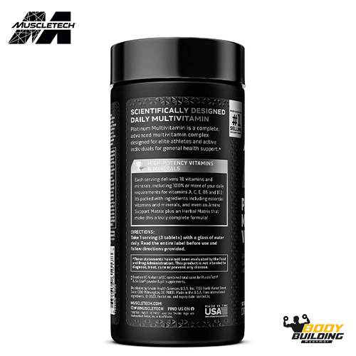 MULTIVITAMIN FOR MEN – MuscleTech Platinum Multivitamin is a complete, advanced multivitamin complex designed for elite athletes and active individuals for general health support