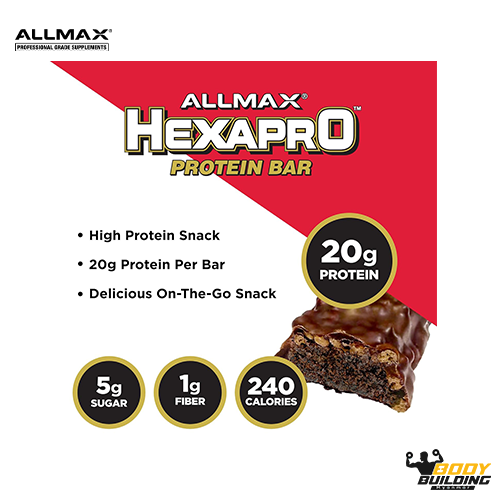HIGH-PROTEIN ENERGY SNACKBAR - Sink your teeth into crispy, creamy layers of ALLMAX HEXAPRO. Packed with 20 g of protein and just 5 g of sugar per bar, HEXAPRO makes it easy to get a high-quality protein snack, anytime, anywhere.