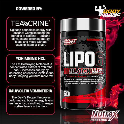 Thermogenic Fat Burner: Lipo6 Black Ultra Concentrate is a powerful fat burner for men and women designed to target stubborn fat and help rapidly destroy unwanted fat deposits.